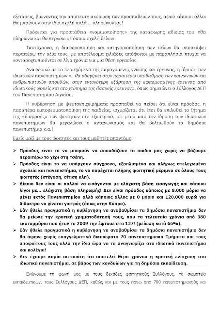 ΑΝΑΚΟΙΝΩΣΗ ΓΙΑ ΤΟ ΝΟΜΟΣΧΕΔΙΟ ΙΔΡΥΣΗΣ ΙΔΙΩΤΙΚΩΝ ΠΑΝΕΠΙΣΤΗΜΙΩΝ